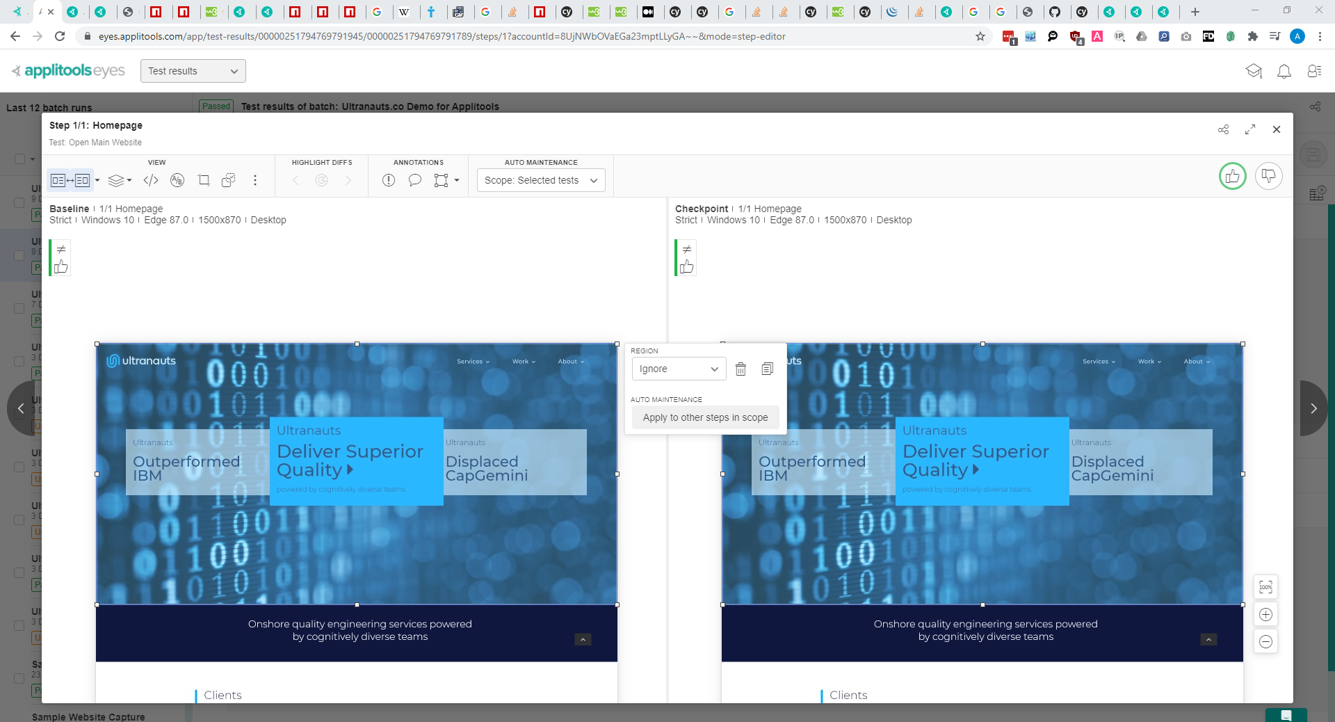 $ batchName: 'Ultranauts.co Demo for Applitools'